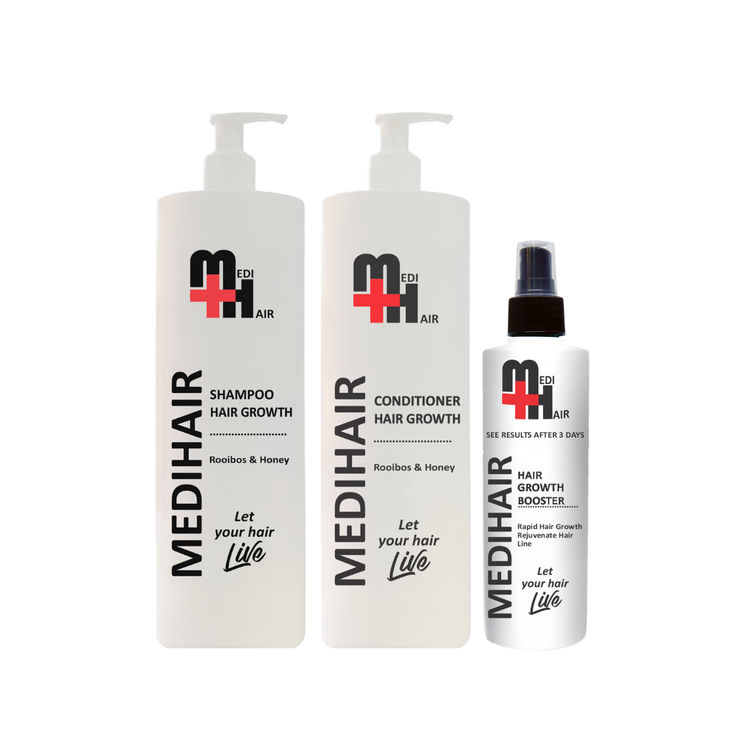 Thinning at the roots? This combo makes it simple. A shampoo, conditioner, and booster that work together to support your scalp, strengthen strands, and encourage healthier growth. One set, one routine, for fuller, stronger hair with less effort.