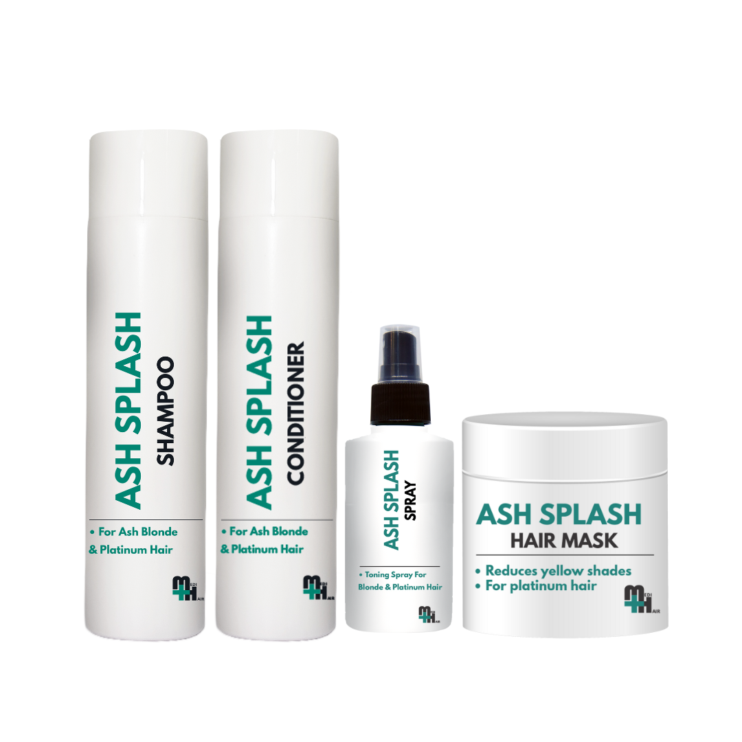 Cool, crisp, platinum made easy. This set includes shampoo, conditioner, spray, and a free mask, all designed to fight yellow tones and keep your ash blonde fresh. Four steps, one bundle, zero brass.